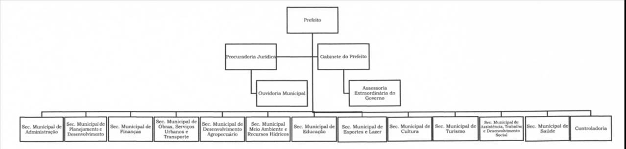 Art. 56 A Secretaria Municipal de Esportes e Lazer é um órgão diretamente ligado ao Chefe do Poder Executivo Municipal tendo como âmbito de ação o planejamento, a coordenação, a execução e o controle das atividades referentes à orientação, supervisão e administração de eventos relacionados a atividades desportivas e recreativas.
